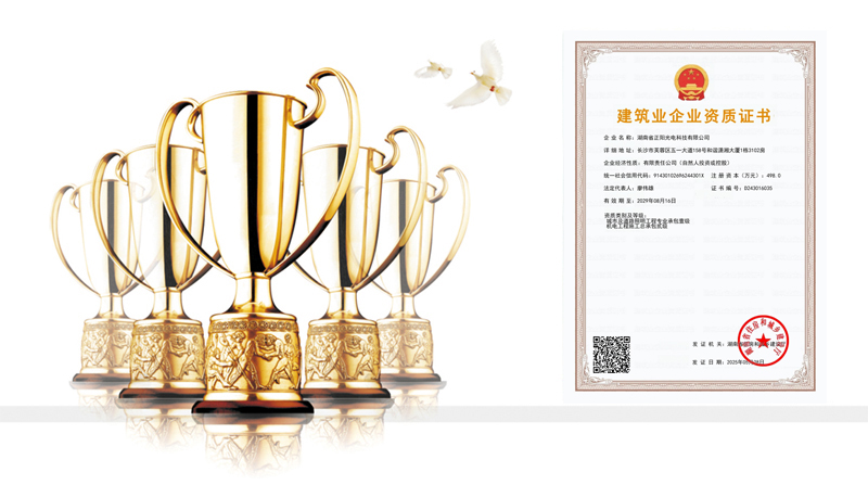 湖南省正陽光電科技有限公司是一家從事亮化工程及大型燈光藝術的設計、制作、安裝和維護于一體的專業(yè)化公司。公司資質齊全、管理嚴謹、技術先進、實力雄厚,取得了城市及道路照明工程專業(yè)承包壹級資質、照明工程設計專項甲級資質、機電工程施工總承包貳級資質、施工勞務等資質、國家高新技術企業(yè)、國家“重質量·守誠信”示范企業(yè)。